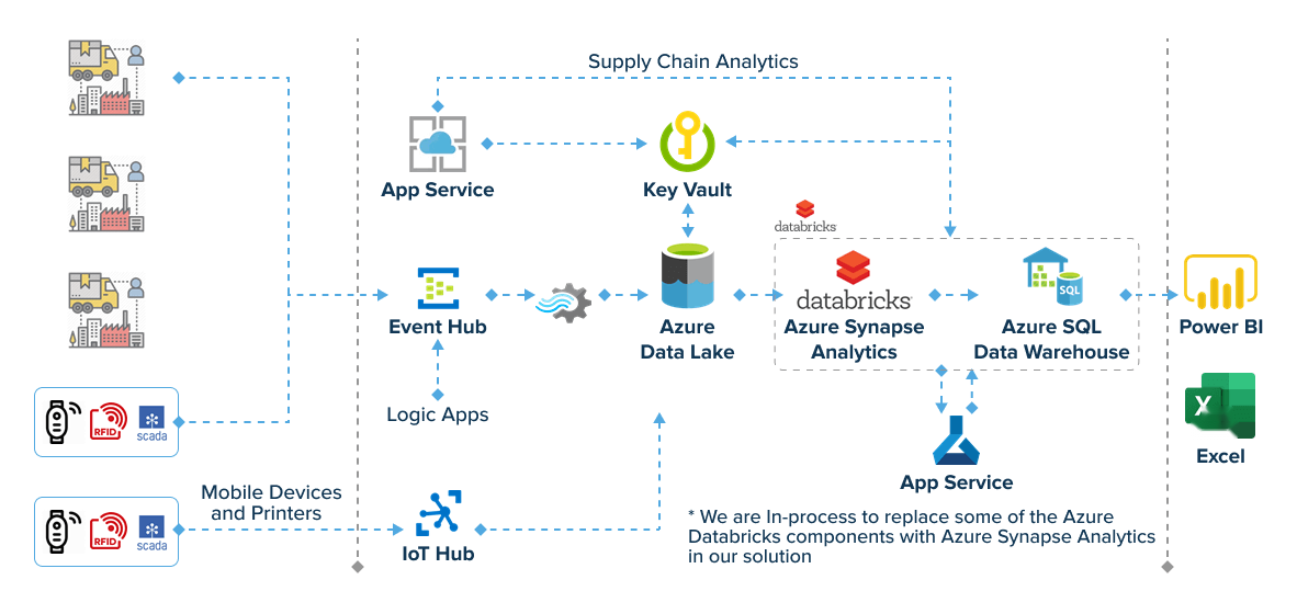 Notre équipe a construit une infrastructure cloud fiable basée sur Azure qui amplifie le flux de données ininterrompu et le traitement des données IoT en temps réel. En conséquence, l'approche traditionnelle de gestion des données a été transformée en un écosystème de données moderne avec une surveillance et des analyses améliorées.